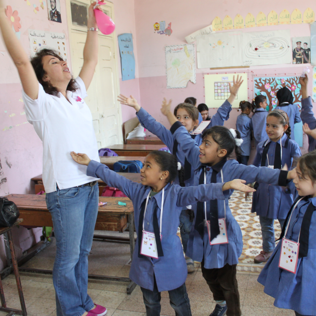 Volunteers visit local, underserved primary schools in their community and deliver our PASS IT ON programme to inspire children to learn English* in a fun and dynamic way.